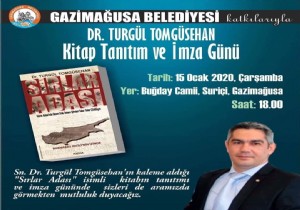 “Gazimağusa Belediyesi’nin katkılarıyla gerçekleştirilecek, Dr.Turgül TOMGÜSEHAN’ın yazdığı “Sırlar Adası” kitabının tanıtım ve imza gününe tüm halkımız davetlidir.”